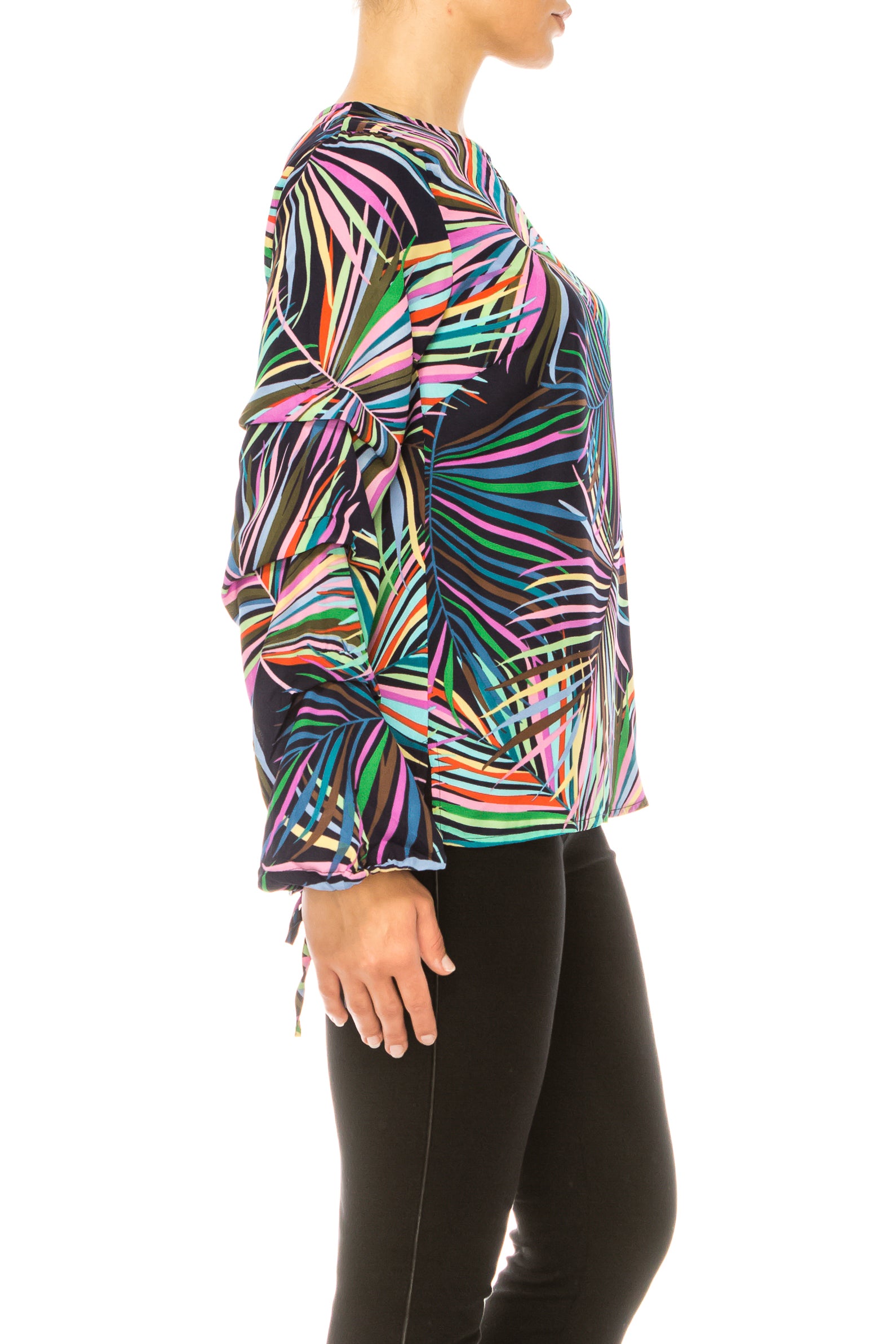 Jessica Rose Long Tie Sleeve Abstract Print Top