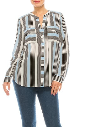 Jessica Rose Striped Button-Down Long Sleeve Top