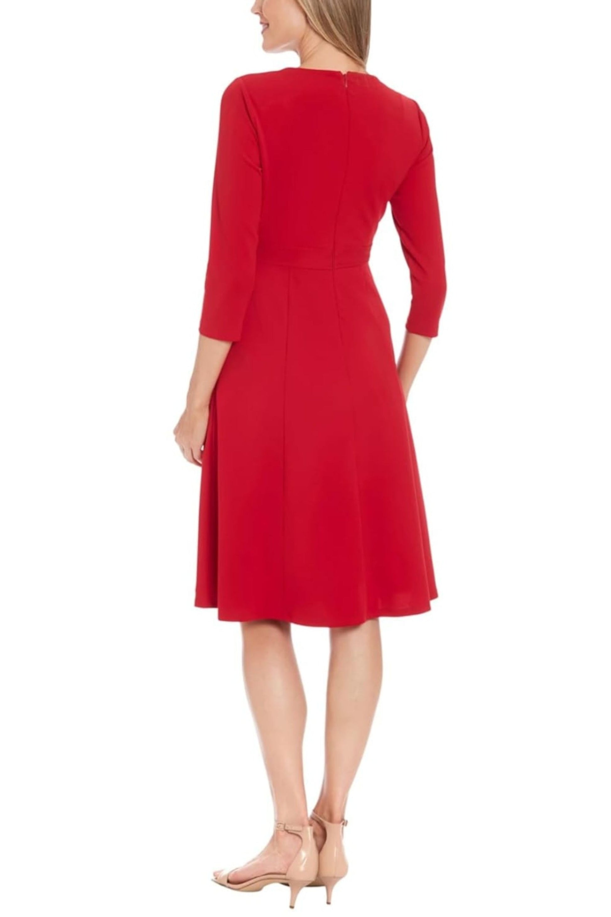 Round neckline dress with rhinstone button waist detail. Dress is not lined, has back zipper. STYLE: T7692M