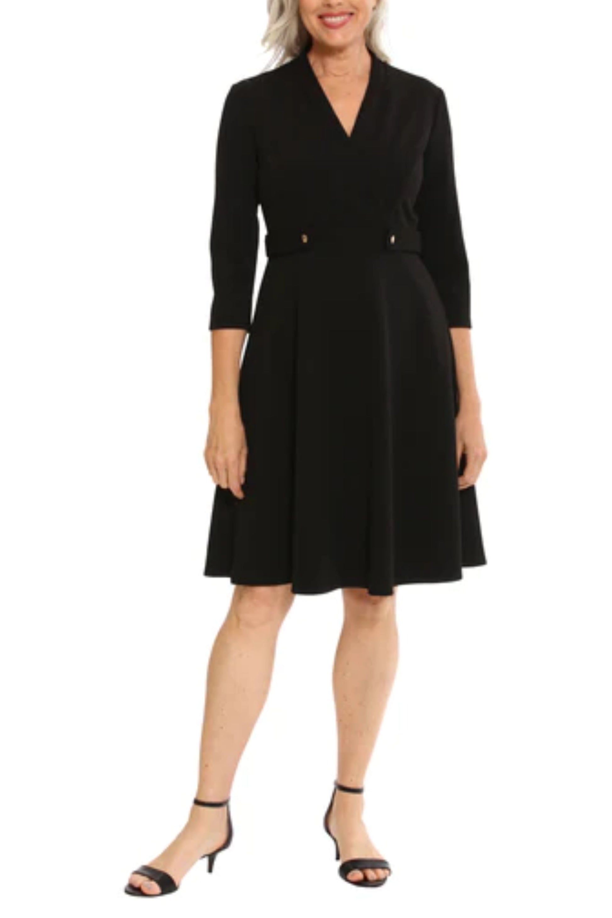 London Times 3/4 Sleeve Double-Button A-Line Dress