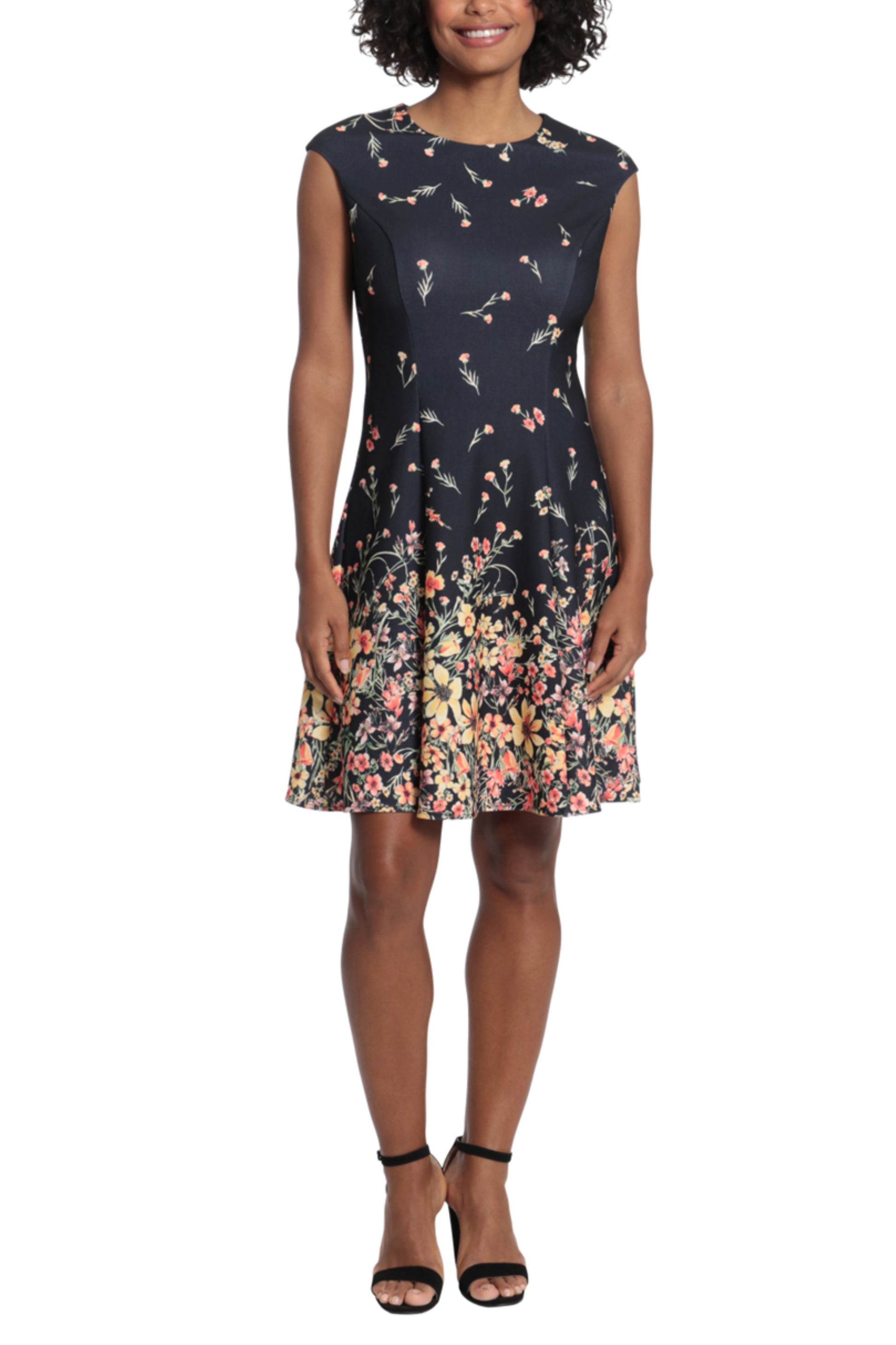 Put the P in pretty in this charming fit and flare dress that features a round neckline, cap sleeves, and an overall standout floral print that is perfect for those warm weather days during spring and summer. This floral dress is ideal for an array of daytime events, such as birthday parties, brunches, luncheons, derbies, gender reveals, and bridal and baby showers.