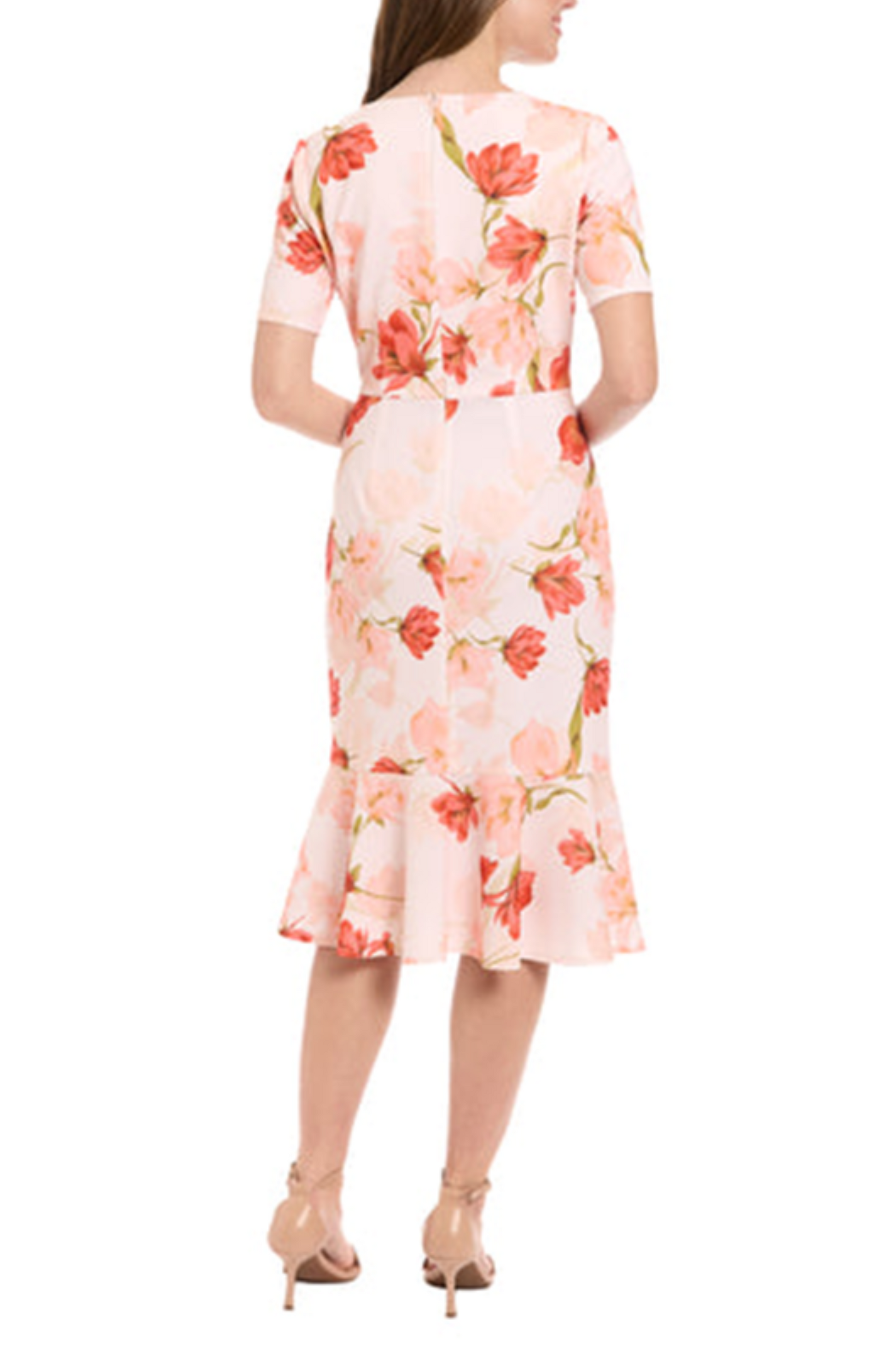 A perfect and pretty floral dress that is reminiscent of a beautiful day in a garden, features short sleeves, a V-neckline, a knee-length flounce skirt, and a twisted waist design. When you need to attend a wedding, Sunday brunch, a luncheon, or bridal shower during the spring and summer, this V neck dress is the winner, and it looks nice with a pair of heels, sandals, pumps or wedges.