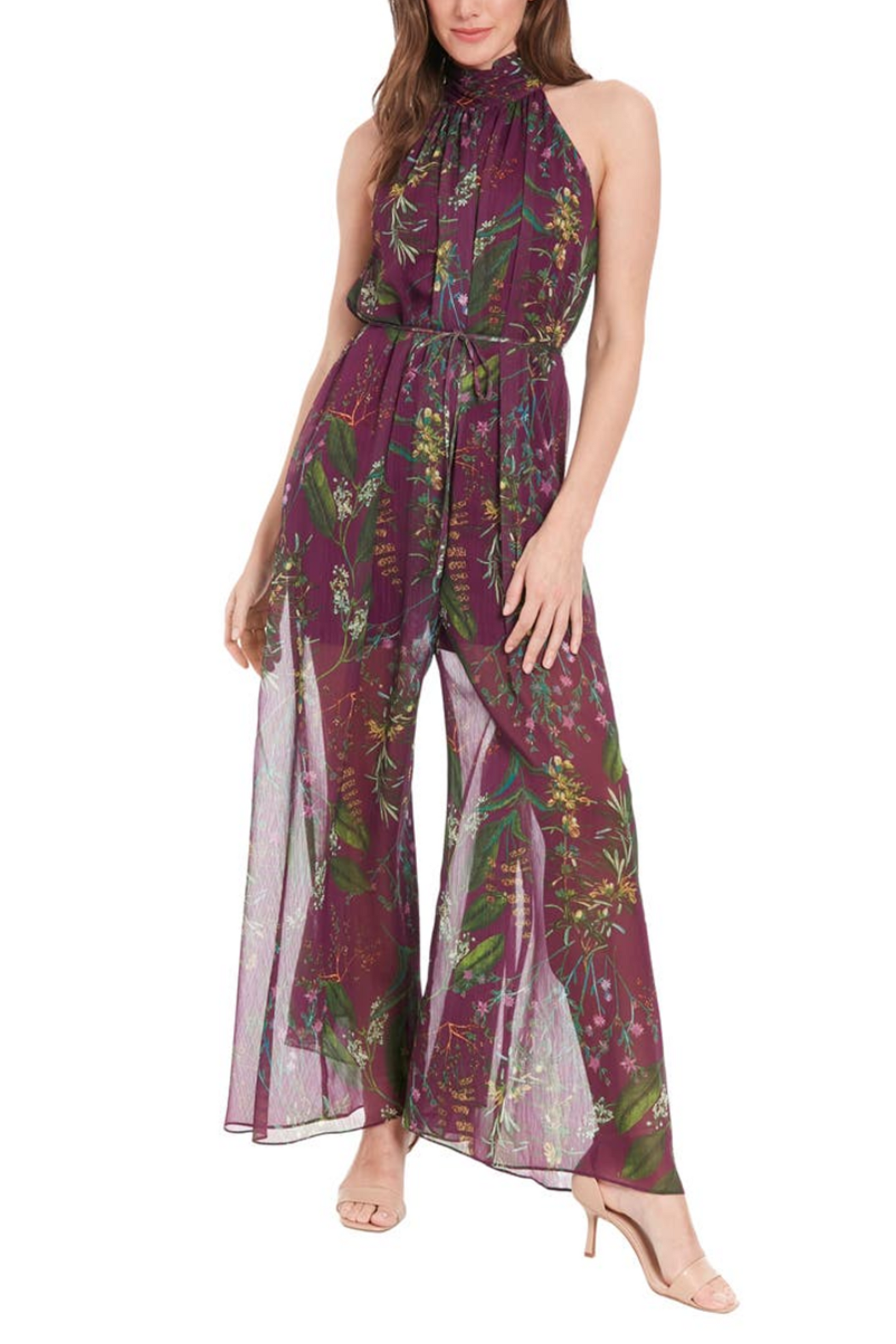 London Times Floral Wide Leg Halter Neck Jumpsuit