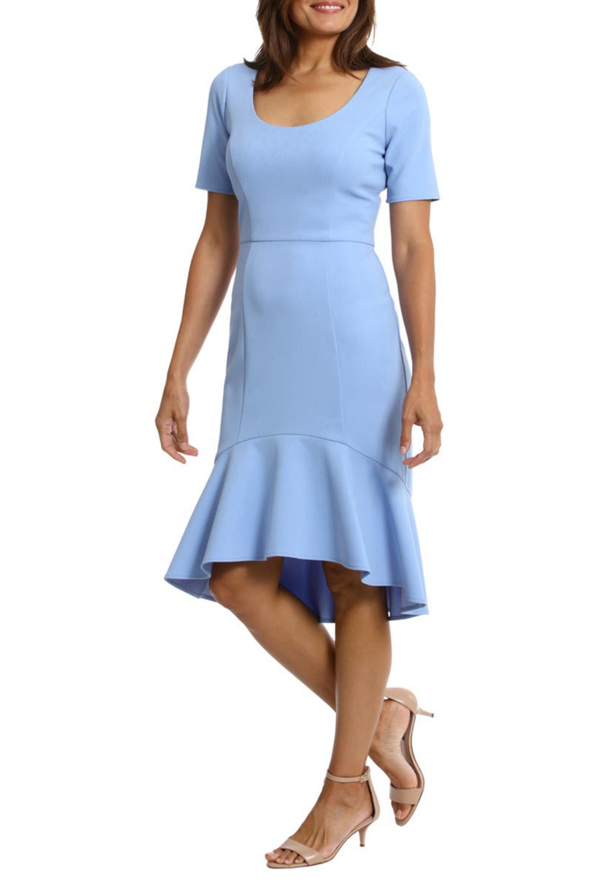 London Times Flounce Hem Short Sleeve Sheath Dress