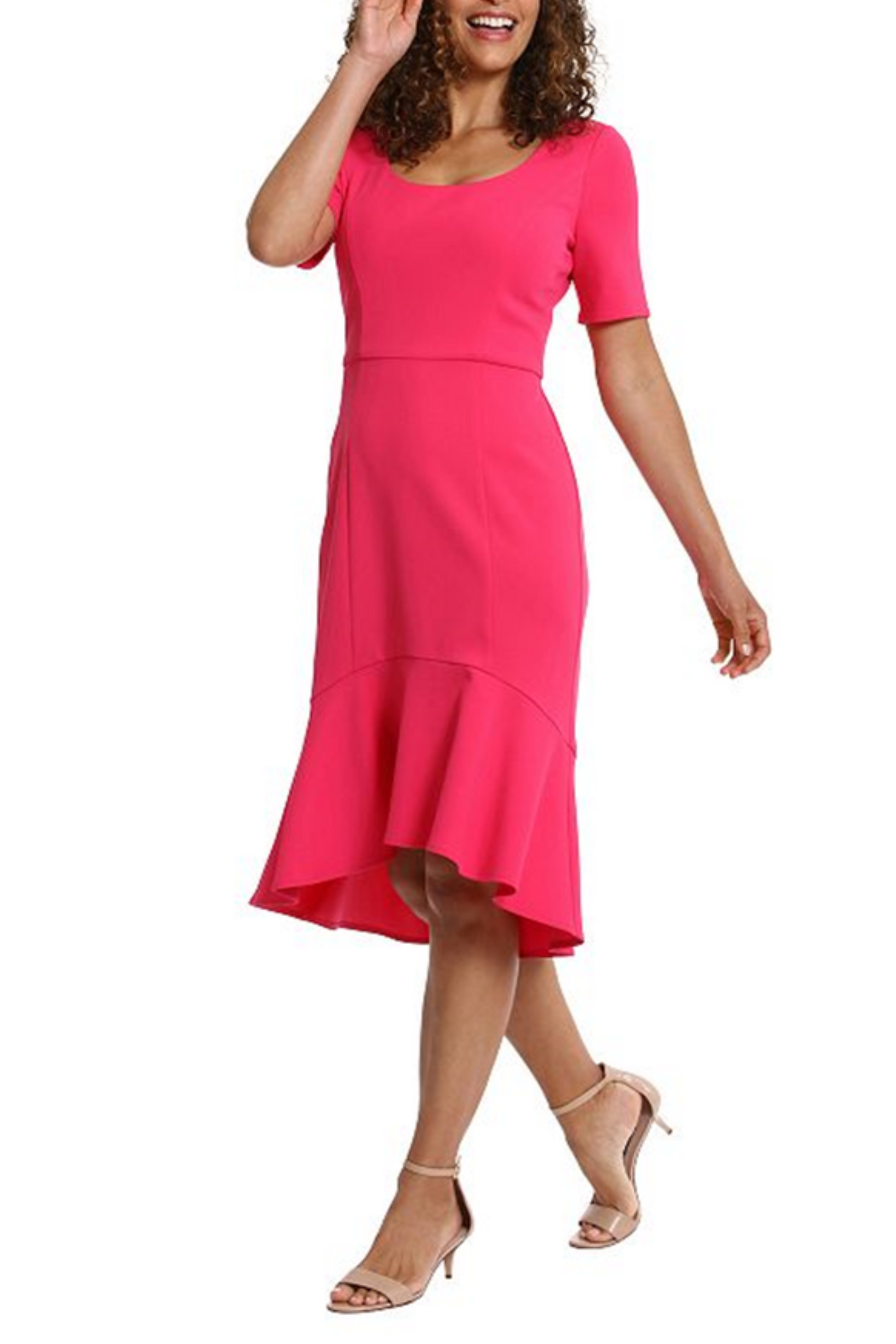London Times Flounce Hem Short Sleeve Sheath Dress