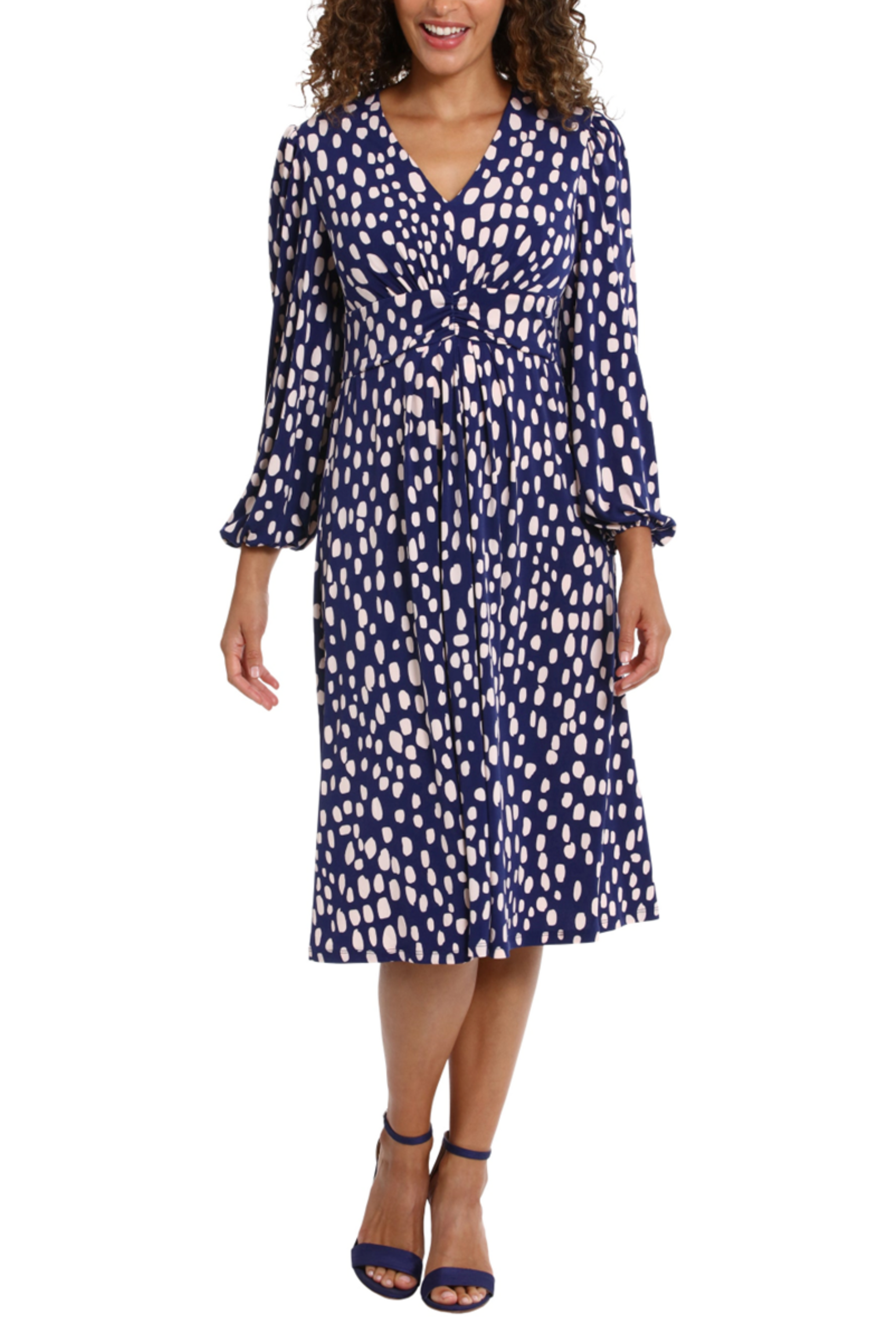 A snazzy and stylish midi dress that is sure to catch the eyes of many, features long bishop sleeves, a V-neckline, a ruched waistline, a mid-length, A-line skirt, and an all-around geometric print. This striking A line dress is needed in your wardrobe for attending great events such as dinner engagements, cocktail and birthday parties, and holiday celebrations.