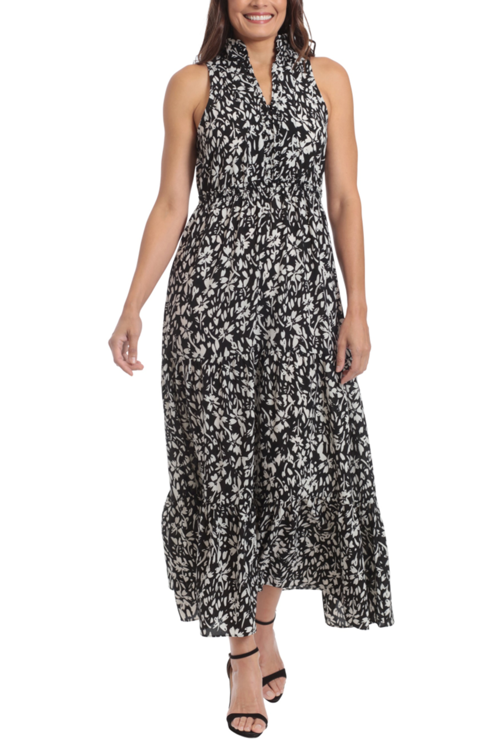 London Times Sleeveless Smocked Waist Maxi Dress