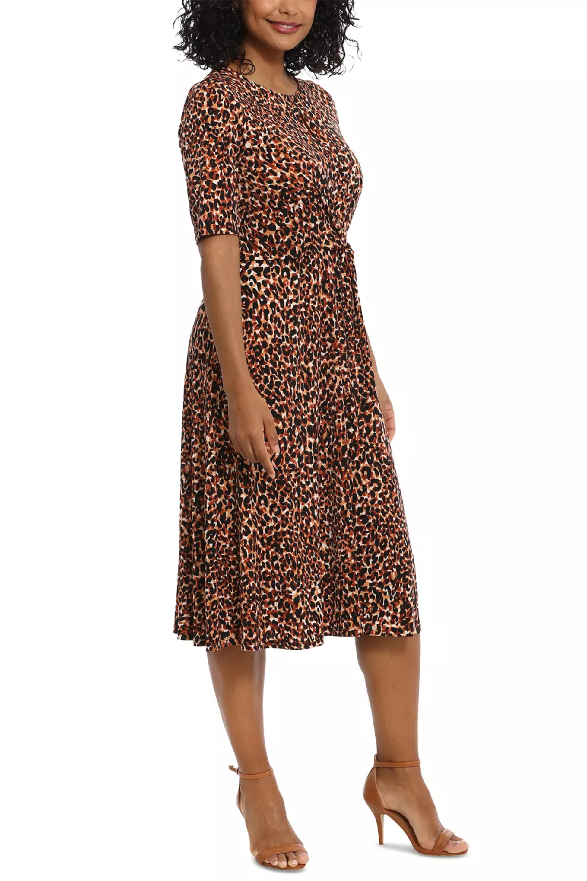 Look refined in this classic-looking midi dress that features an all-around animal print, a crew neckline, a keyhole front, short sleeves, a side tie waist, and a calf-length A-line skirt that pairs nicely with heels, flats, and sandals, along with a cardigan or blazer. This timeless flare dress can be worn year-round, both during the day and at night, to work and cocktail and dinner parties.