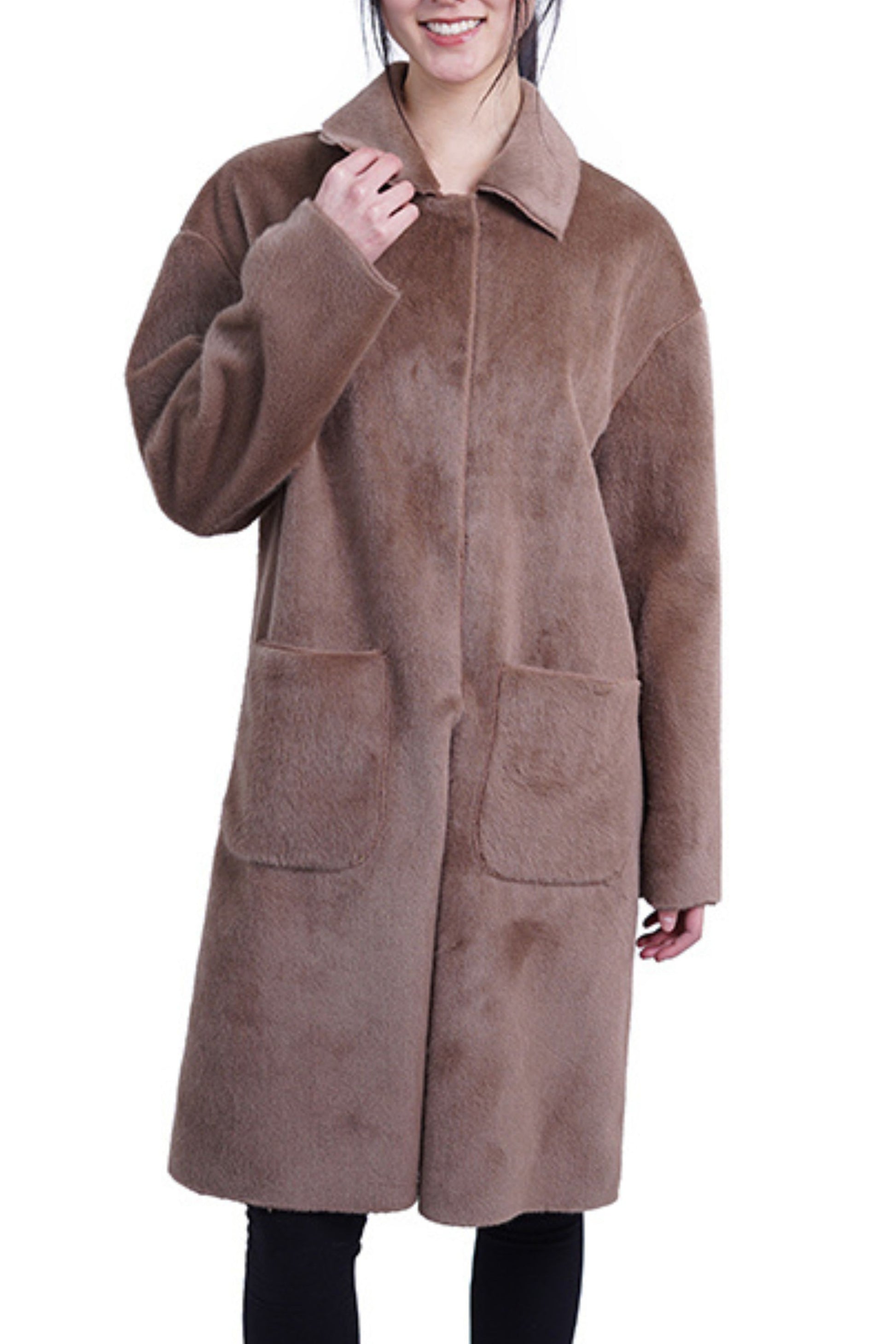 When it comes to a mid length coat, this gem is top-tier and a must-have for the fall and winter months when you want to look stylish and keep warm simultaneously. This classic beauty features long sleeves, open-front pockets, a spread collar, and hook-and-eye closures to complement your best outfits when you attend parties, date nights and weddings.