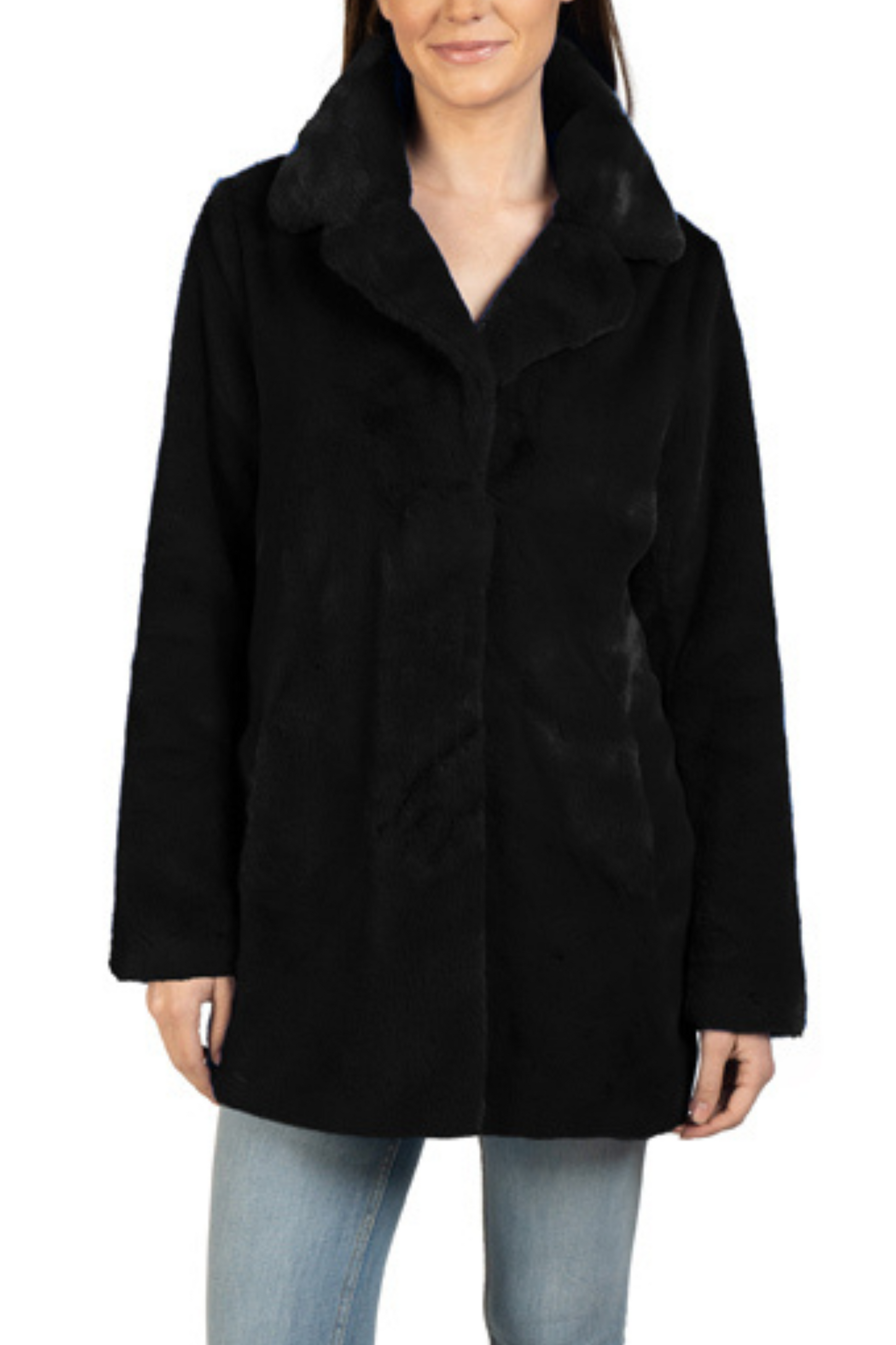 Look like a warm and fabulous fashionista in the epitome of a stylish mid length coat that features long sleeves, a notched lapel collar, a thigh-length silhouette, hidden side pockets, and hook-and-eye closures. This faux fur coat is made for your wardrobe during the fall and winter months to wear to all those special events like parties, weddings, and dates on your social calendar.