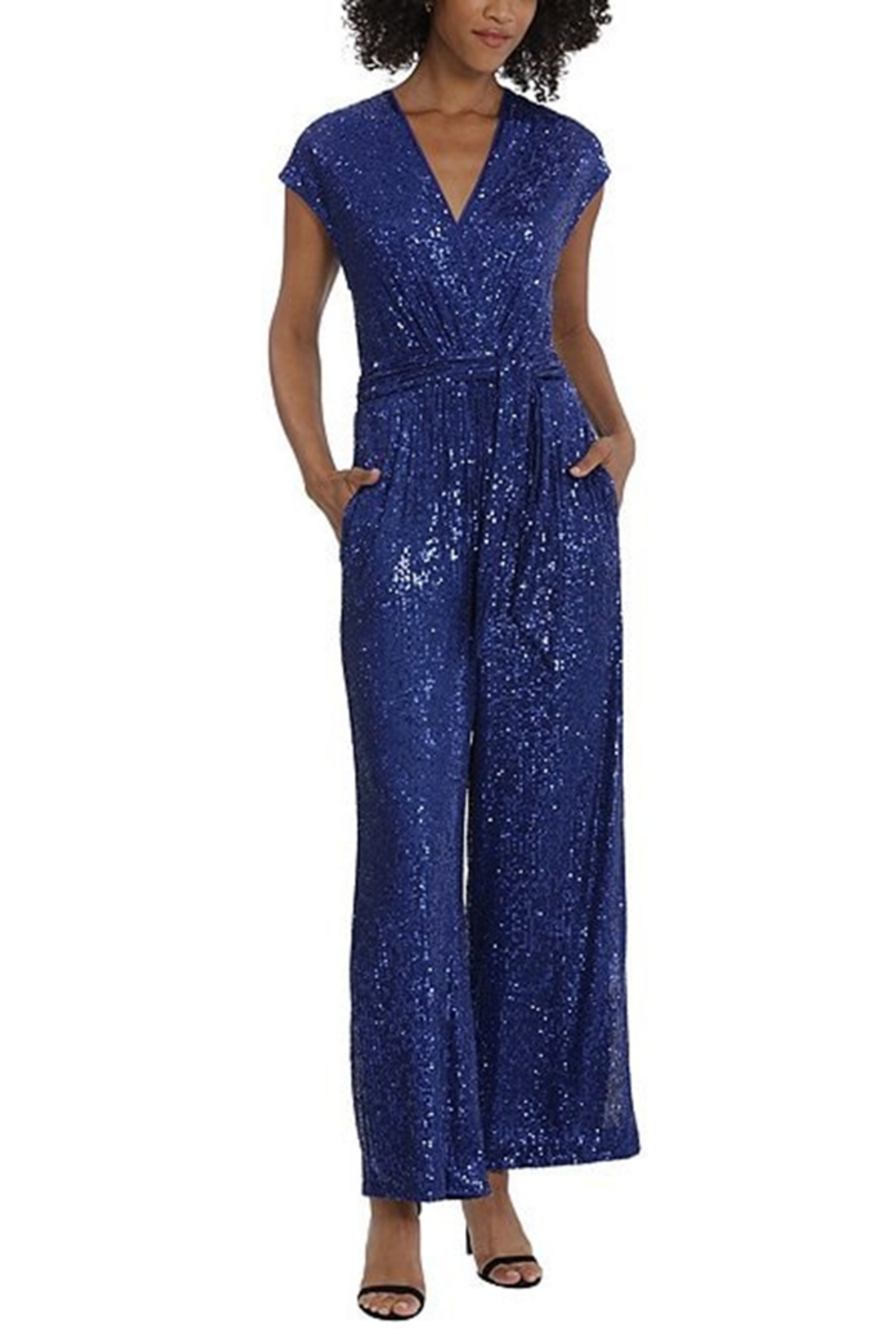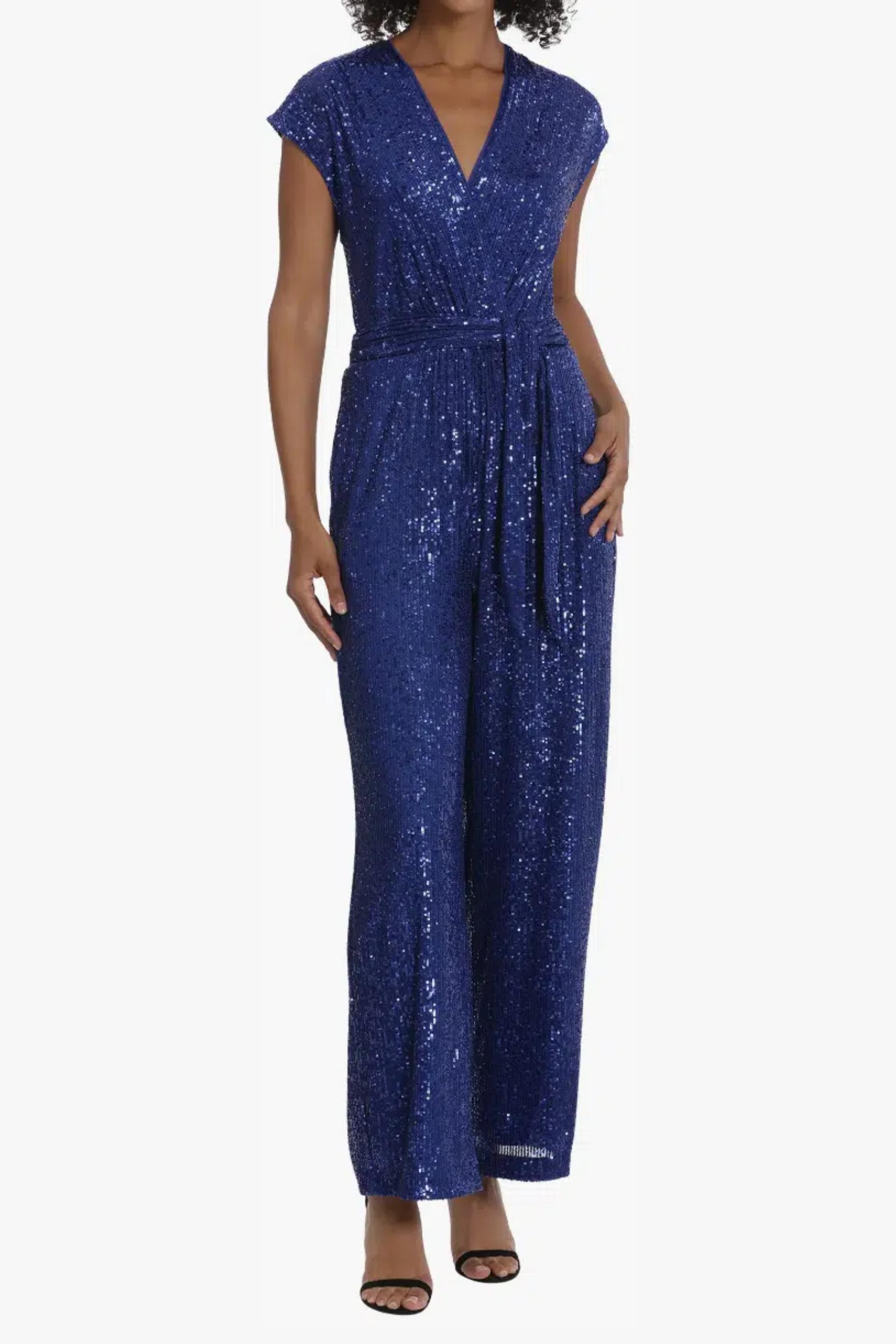 Maggy London Cap Sleeve Wide Leg Sequined Jumpsuit