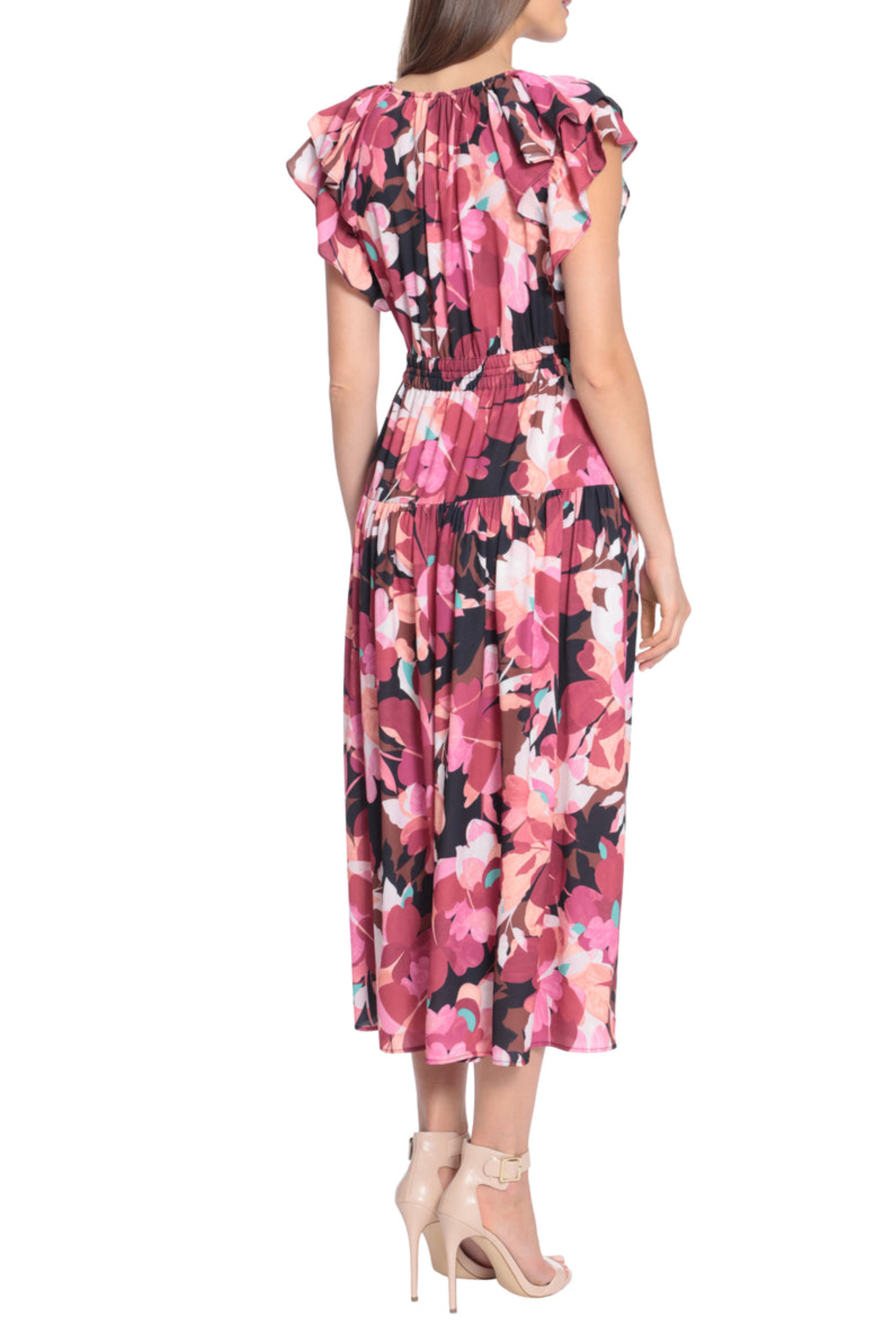 Maggy London Keyhole Neck Floral Print Midi Dress