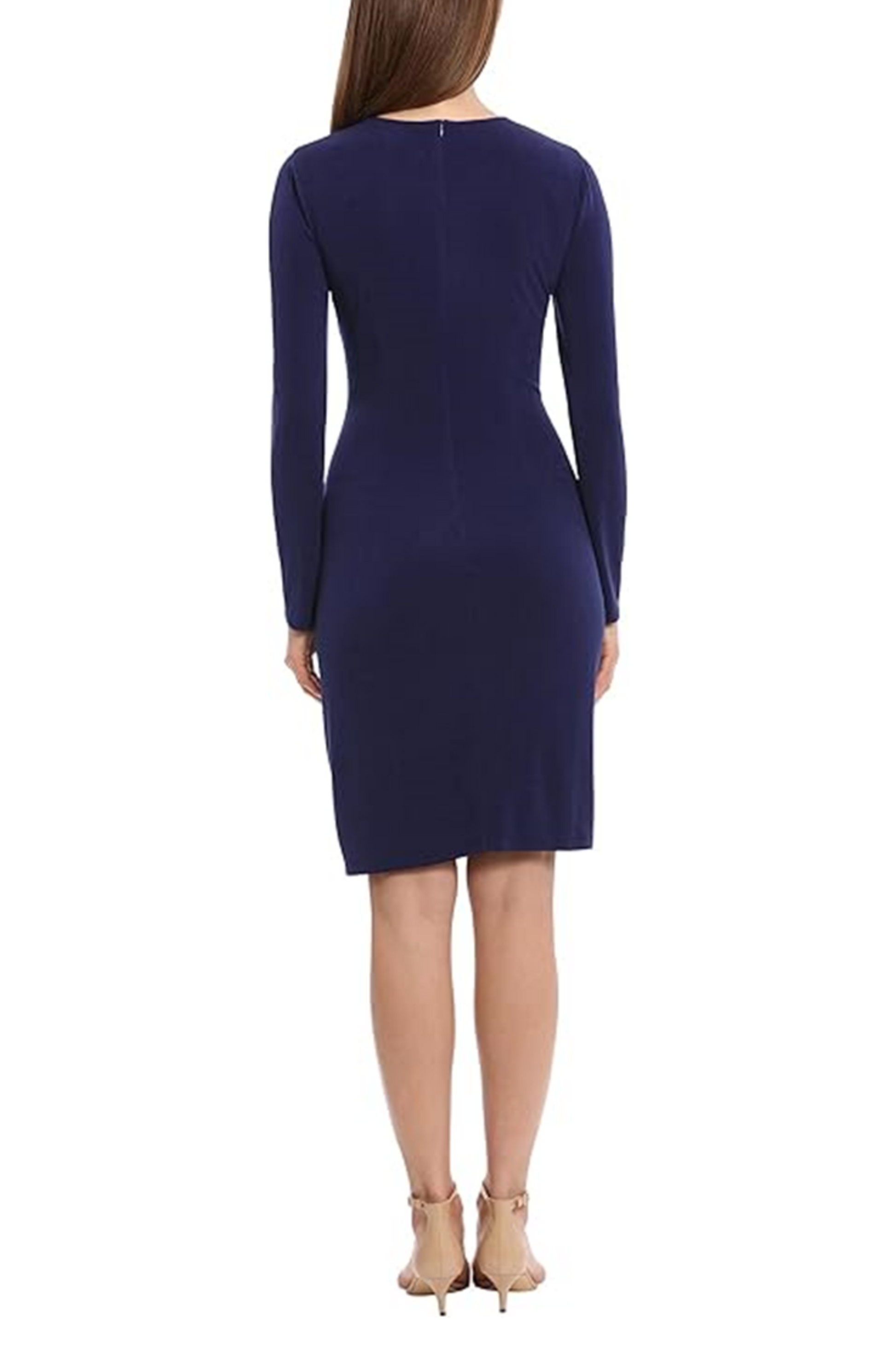 Maggy London Long Sleeve Ruched Skirt V-Neck Dress