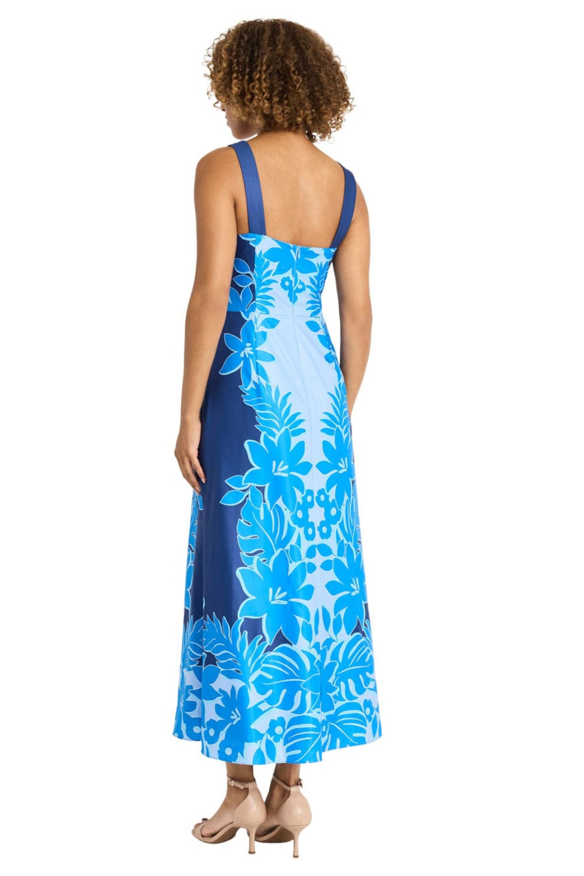 The tailored bodice flows seamlessly into a full, sweeping skirt, creating a graceful silhouette that moves with you. Whether you’re looking for a standout vacation dress, a chic outfit for a summer wedding, or a polished look for a coastal event, this sleeveless floral dress is the perfect choice. Pair it with neutral block heels or sandals to let the vibrant botanical pattern take center stage.