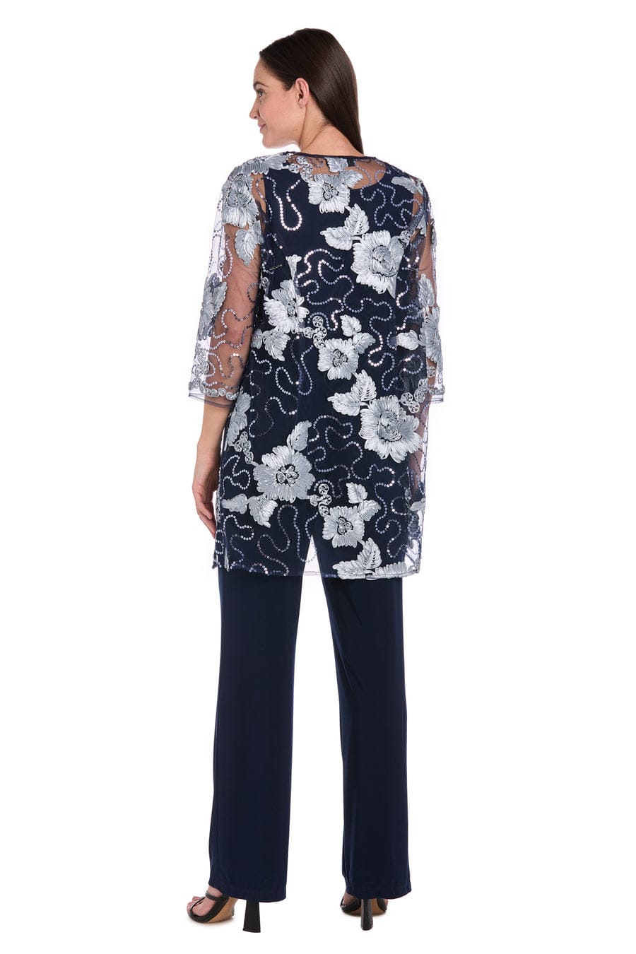 R&M Richards Embroidered Three-Piece Pant Set in Navy Slate