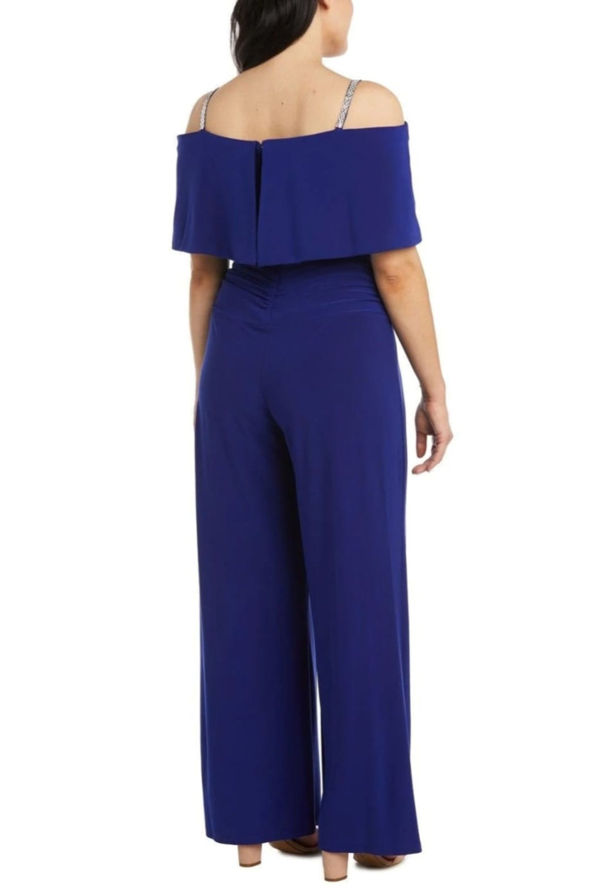 A divine and elegant ladies formal jumpsuit that is a must-have in your wardrobe due to its classic and timeless design, which makes it great for attending weddings, along with birthday, cocktail, dinner, and holiday parties. This dressy jumpsuit features an off-the-shoulder silhouette with rectangular and round clustered rhinestone straps, a ruched waistline, and flowy wide leg styling.