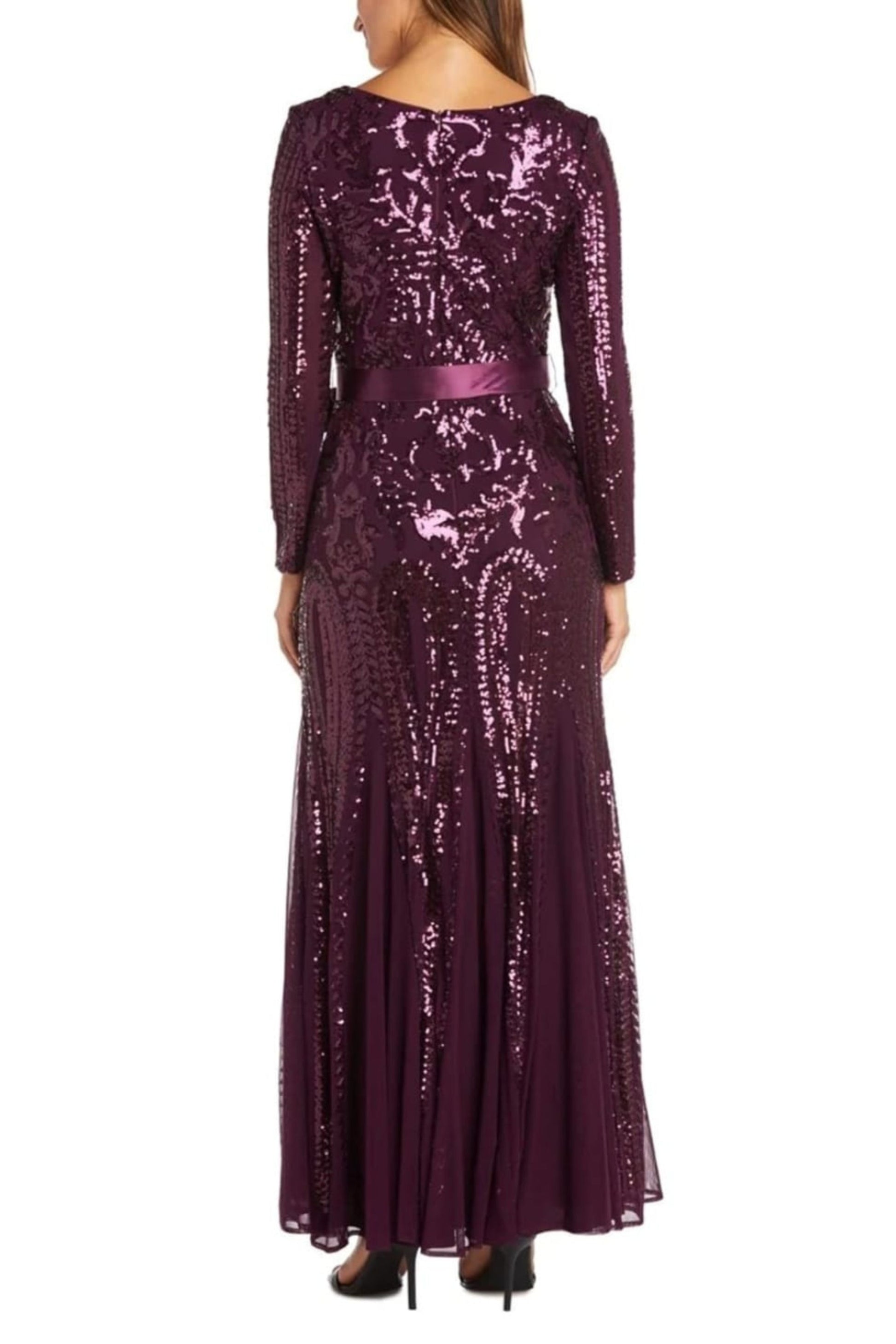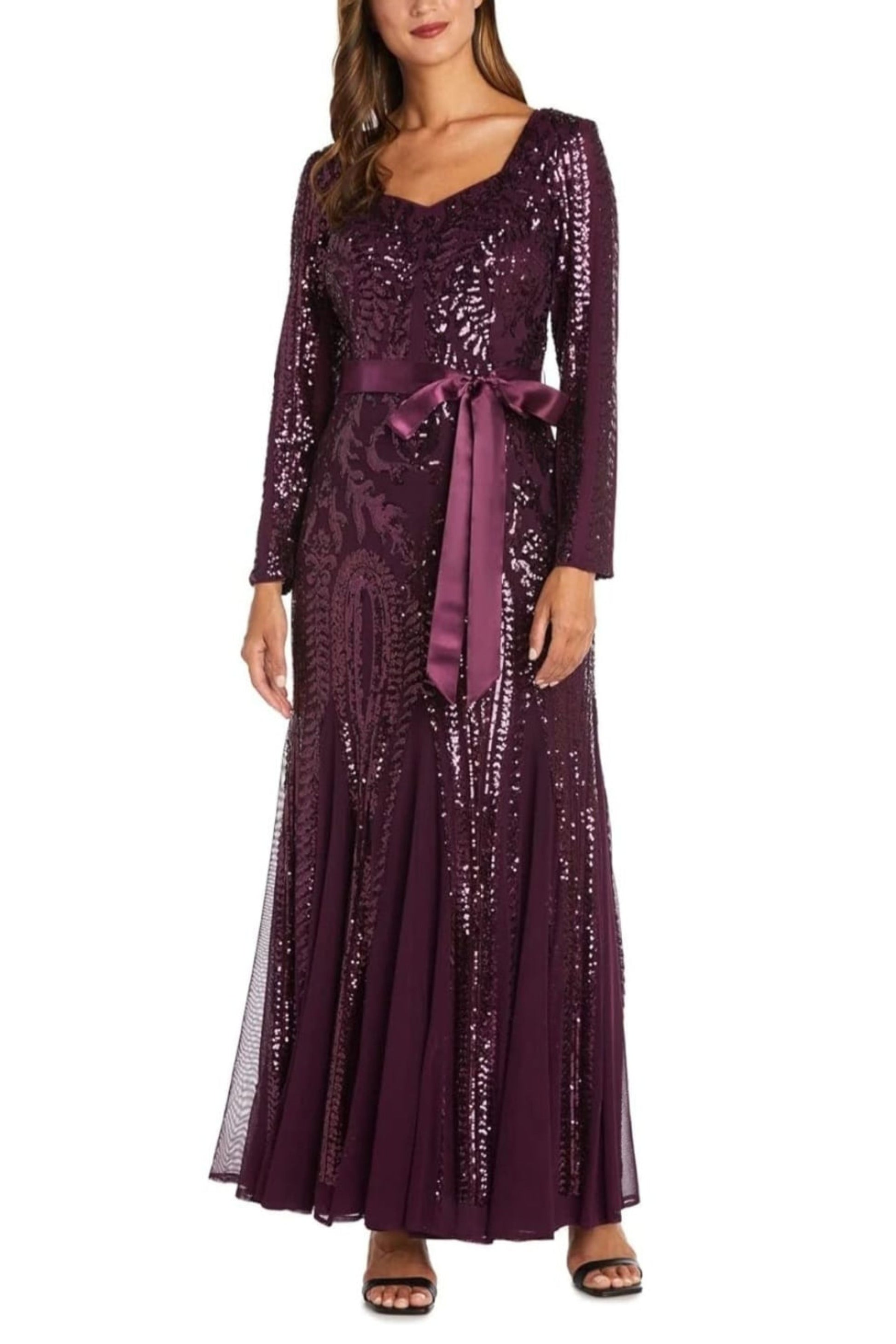 RM Richards Long Sleeve Sequined Evening Dress