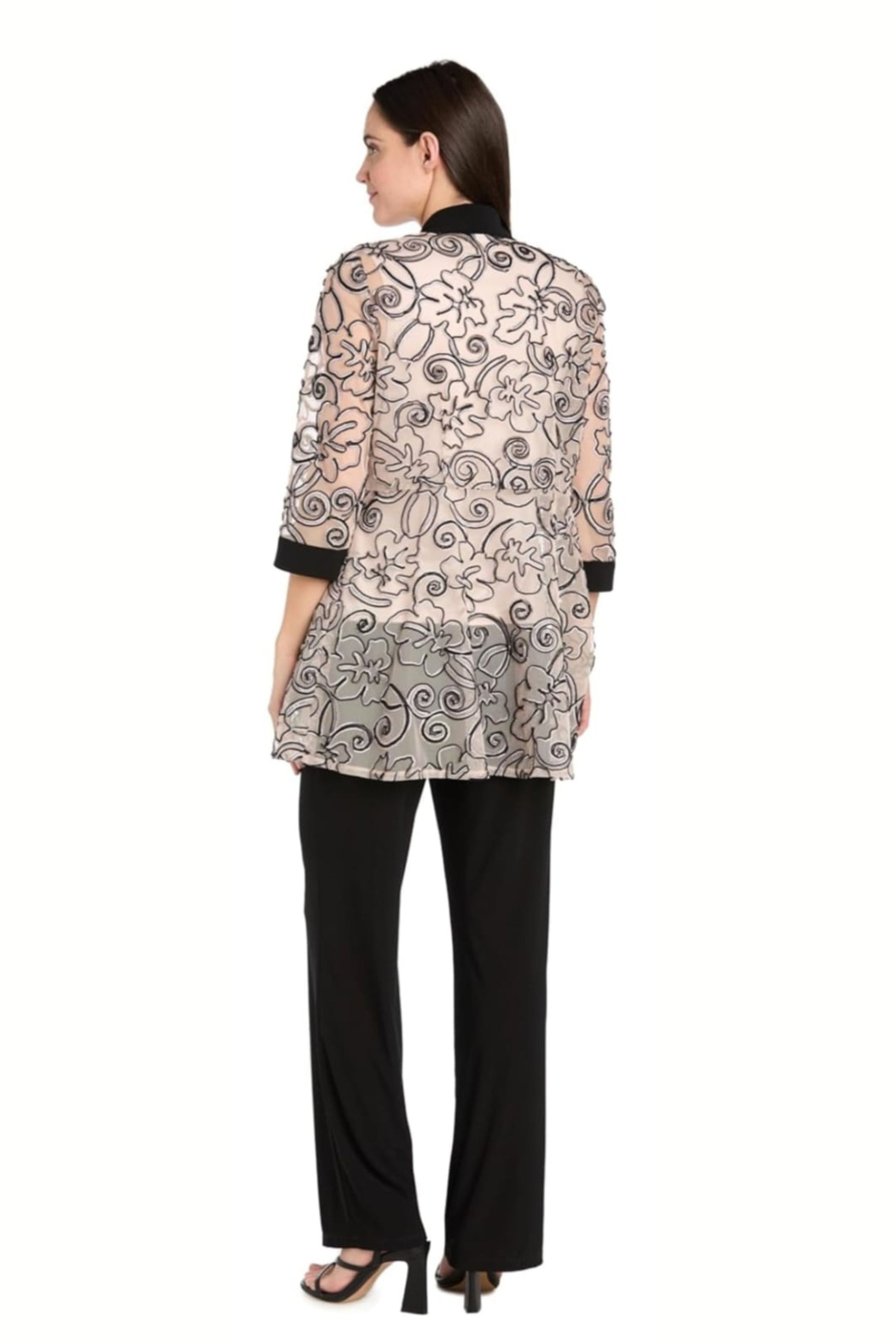 3/4 sleeve tulle embroidery pant set with removeable necklace. Pants are stretch jersey. STYLE: 3352