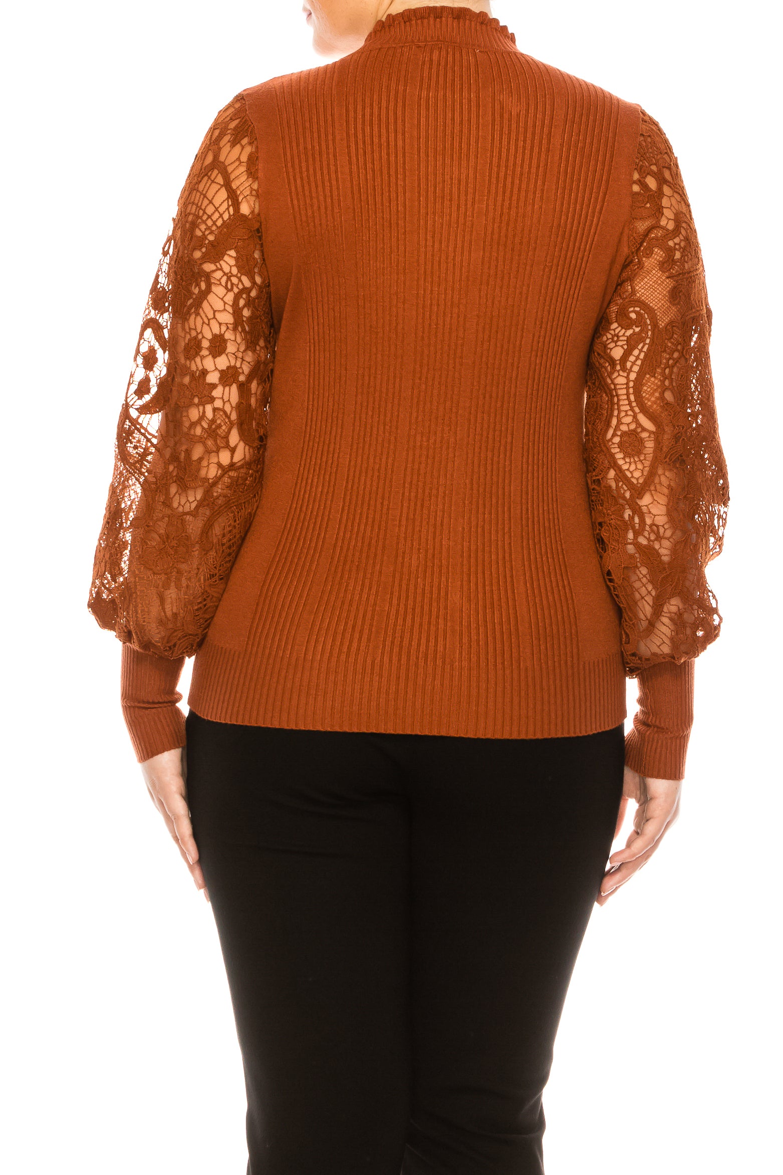Sioni Crew Neck Embroidery Sleeve Sweater Top