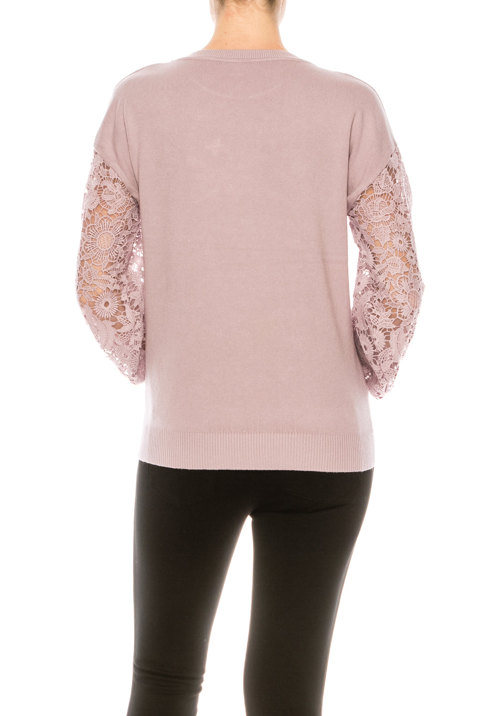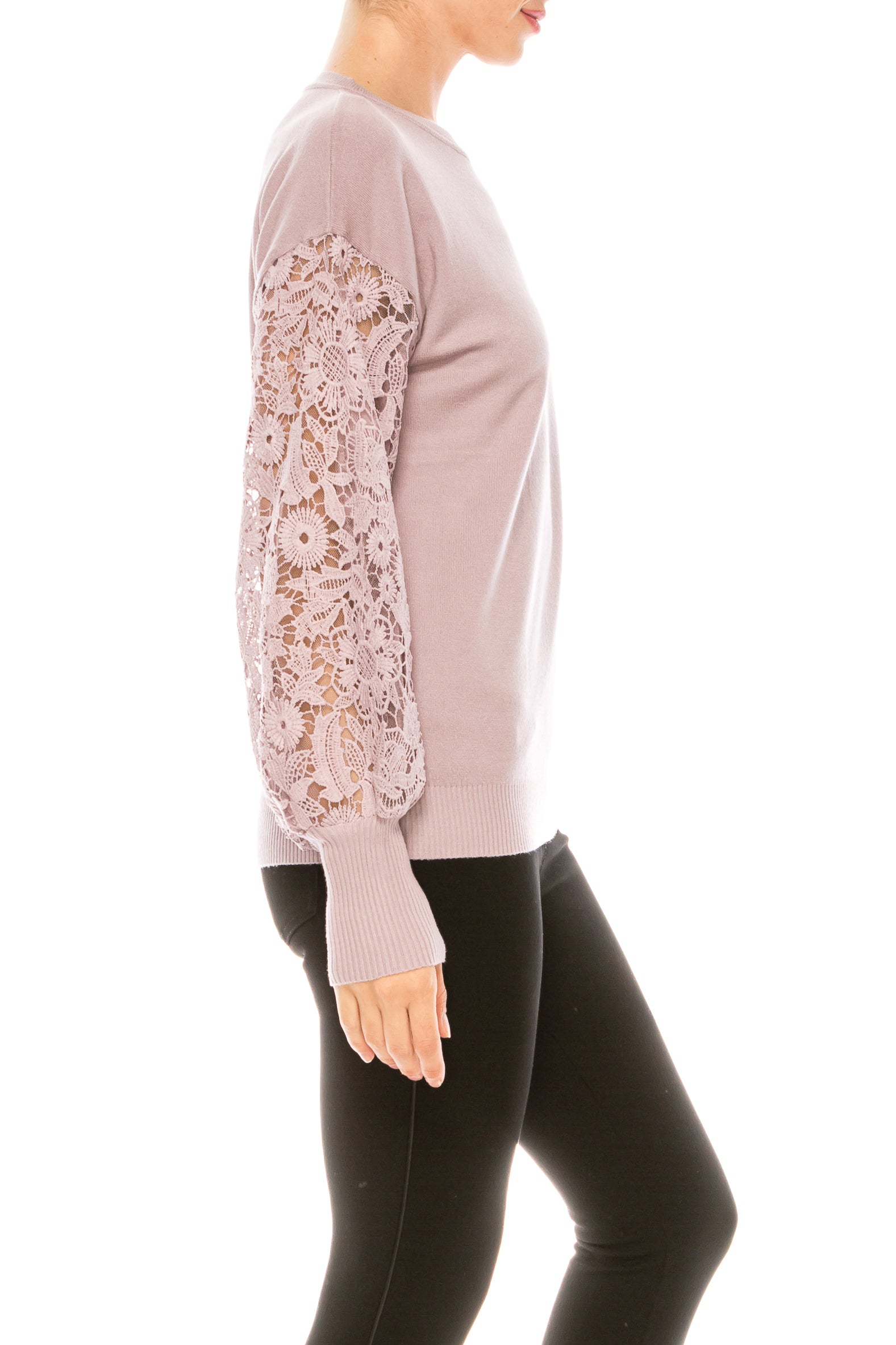 Sioni Crew Neck Lace Puff Sleeve Knit Top (More Colors)