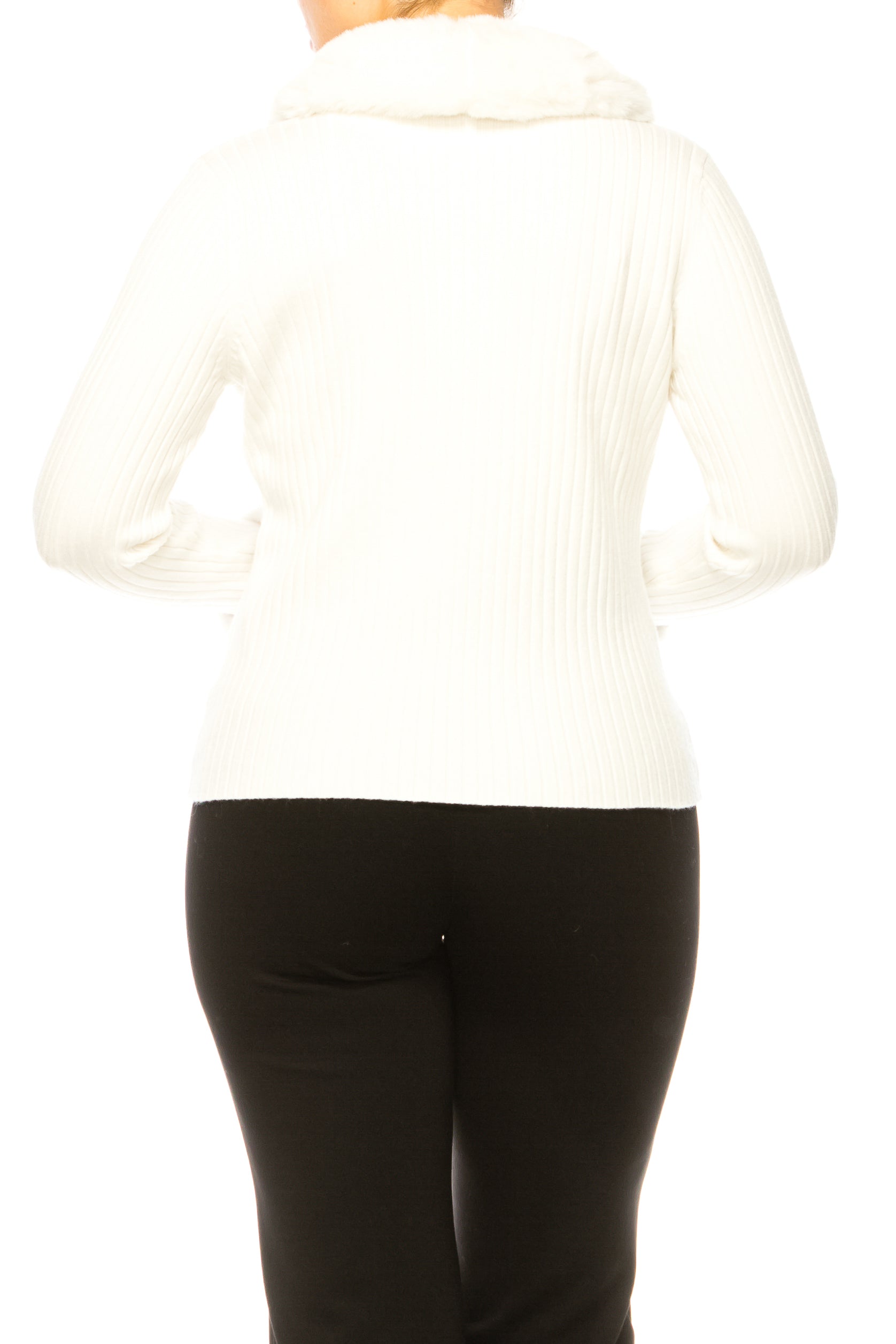 Sioni Faux-Fur Trim Ribbed Zippered Sweater