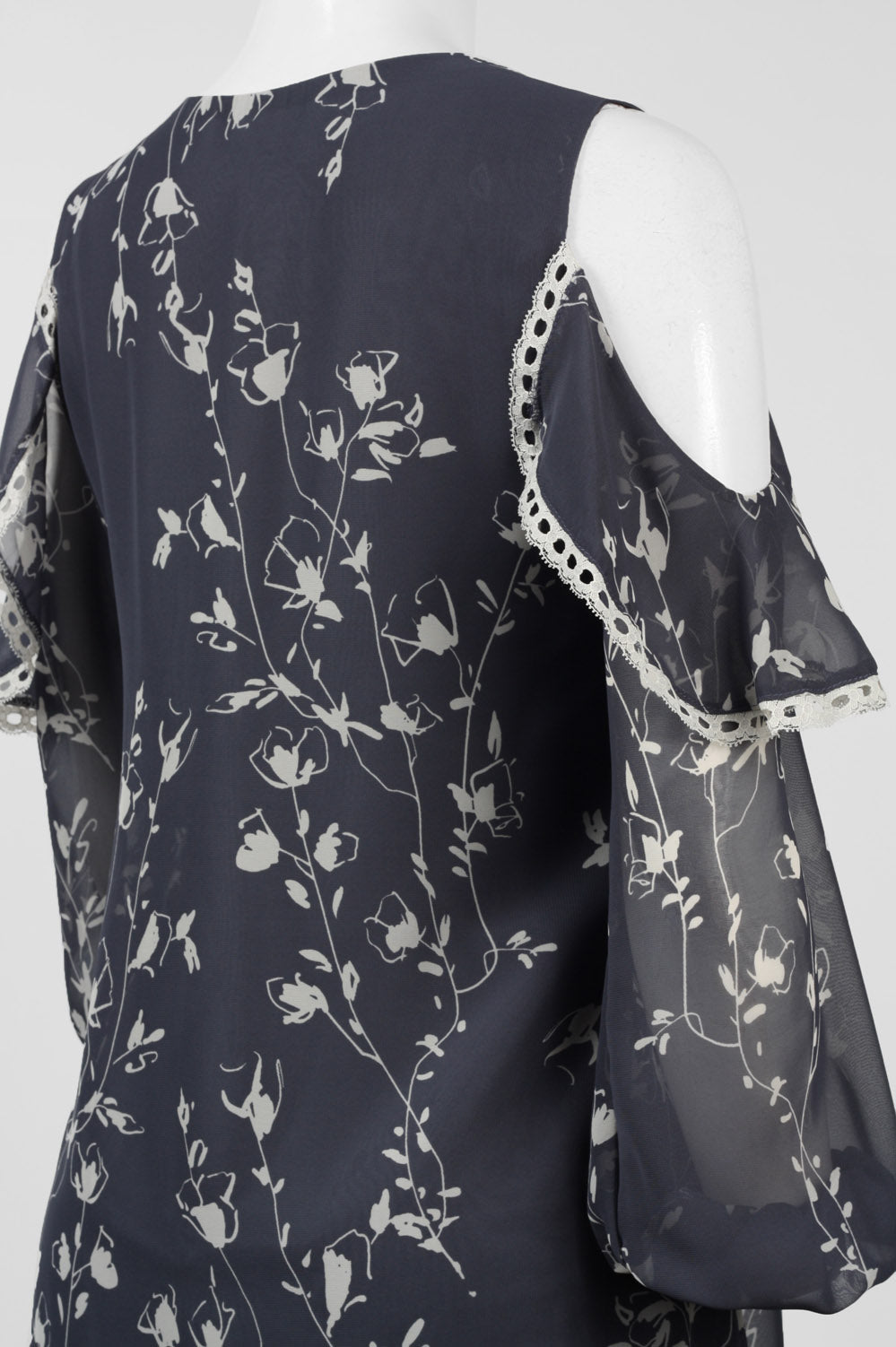 V-Neck Cutout Shoulder Ruffled Long Sleeve Multi Print Chiffon Dress. Lined. By Taylor. STYLE: 9011M