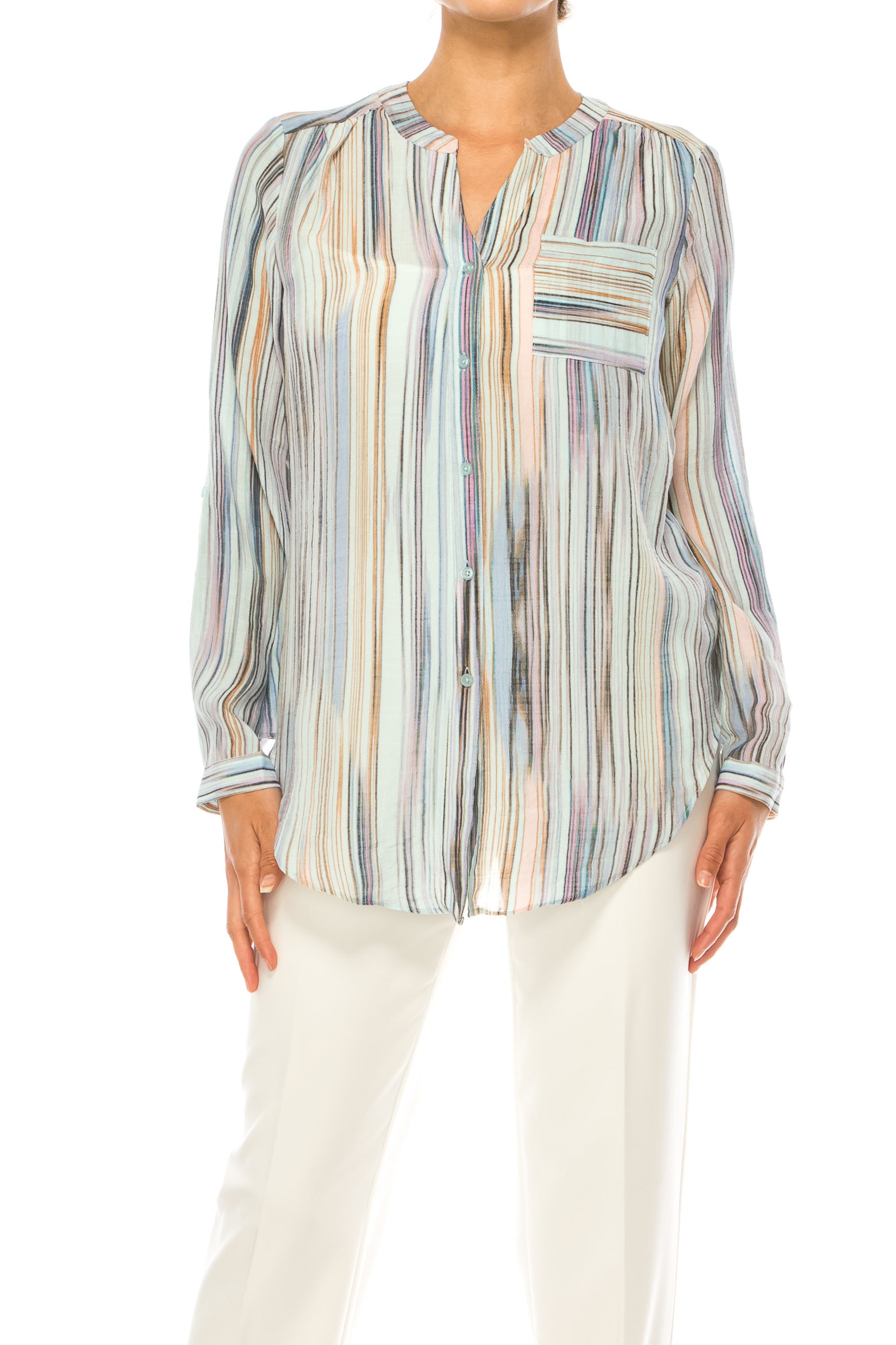 Be prepared for those warm weather days with this vibrant-colored and pretty printed blouse that features a button-down placket, with a V-cut neckline, one side open-front chest pocket, 3/4 to long adjustable one-button tab roll-up sleeves, and a rounded hemline. This lovely lightweight and loose-fitting button up shirt looks nice with a pair of jeans, shorts or skirts.